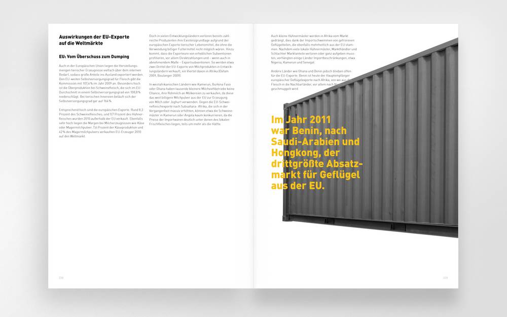 Unsere Vorstellung vom Fortbestehen einer idyllischen Landwirtschaft entspringt eher der visuell gestalteten Warenwelt aus Natursimulationen, als der vorhandenen Realität. Das entstandene Buch versucht diese Realität sichtbar, verständlich und dadurch erst wirklich bewertbar zu machen.