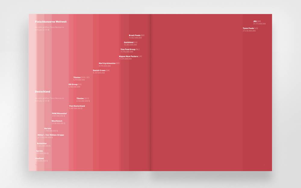 Die Diplomarbeit visualisiert die Dimensionen und globalen Auswirkungen die durch die Produktion und den Konsum von Fleisch entstehen. Ein Produkt ist so nie nur es selbst, sondern besteht aus der Summe aller enthaltenen anderen Produkte und Handlungen. Daher sind alle Auswirkungen die entlang des betrachteten Produktionsprozesses entstehen, mit dem Stück Fleisch verbunden das an der Kasse gescannt wird.